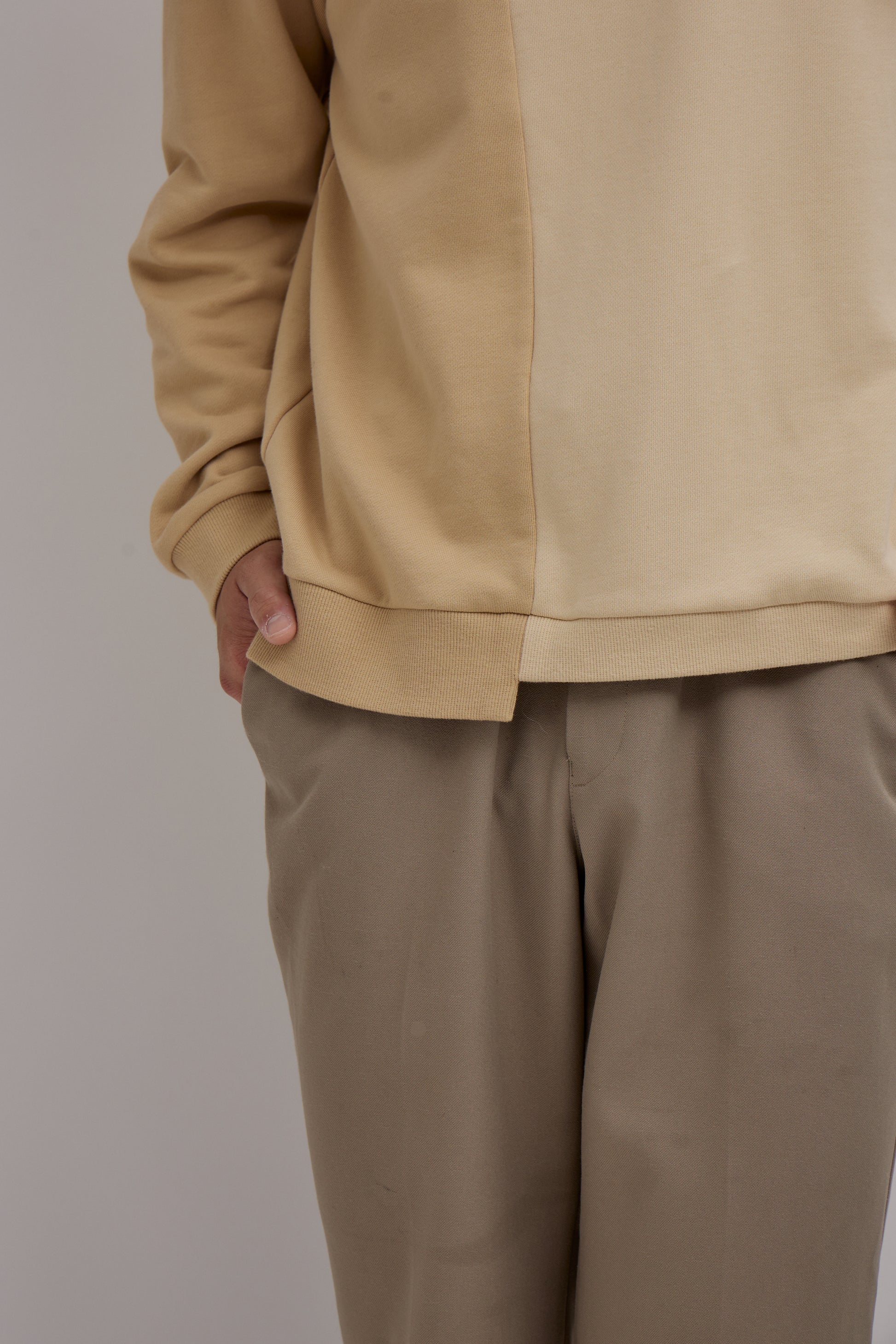 襟元と裾の段が異なるデザインそして左右で異なる色使いによってシックで無機質なデザインとなり男女ともに大好評な一着。シンプルながらも細部に個性を感じさせるデザインや、ブランドロゴの刺繍がコーディネートにさりげないアクセントを加え、どんなスタイルにも馴染みます。
